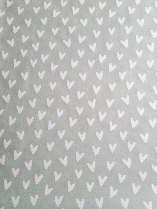 Vloeipapier op Rol – Zachtgroen met witte hartjes print (30 cm x 5 m)
